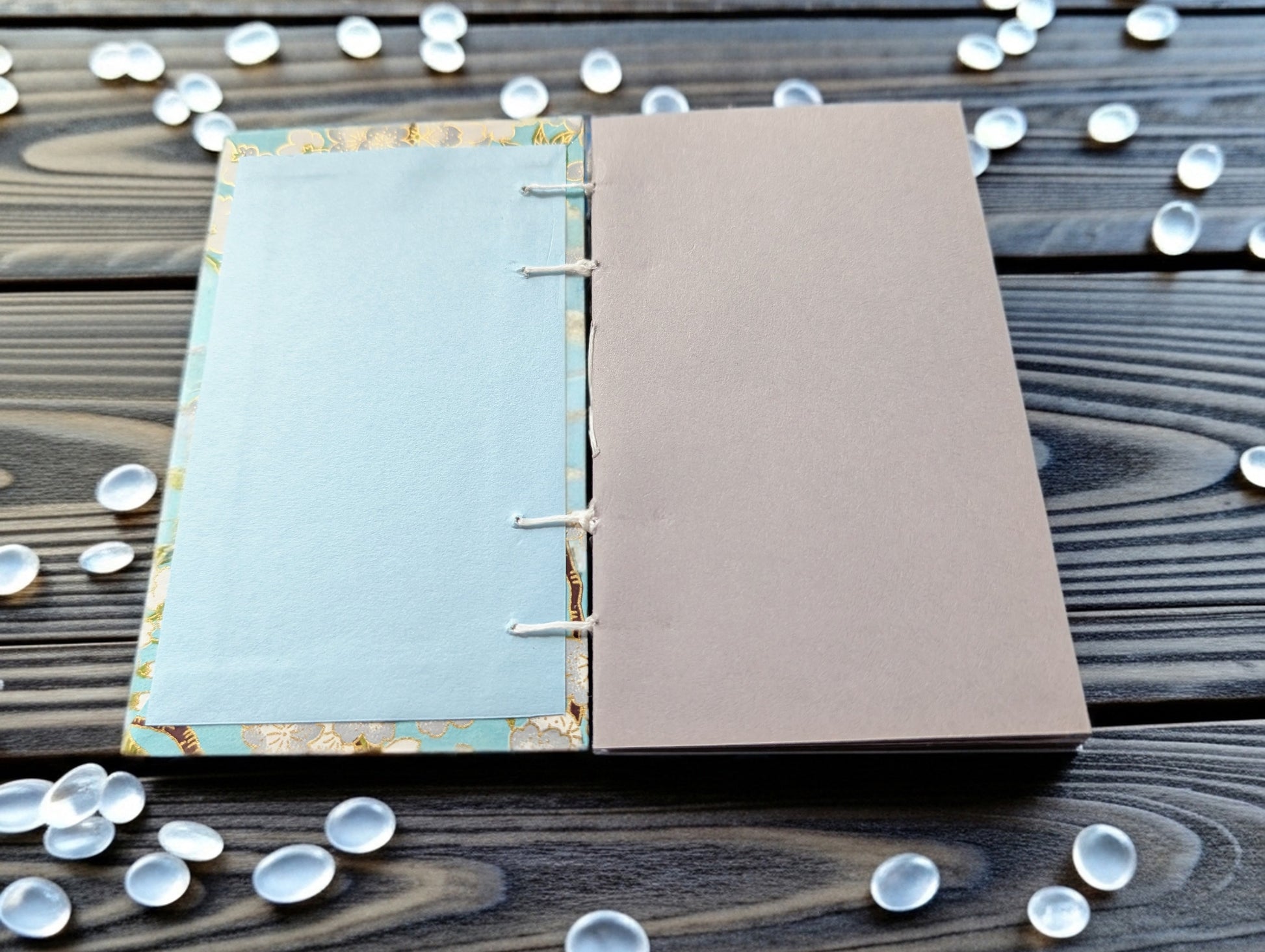 Gray and White Blossoms on turquoise background - Mini Sketchbook - French Stitch