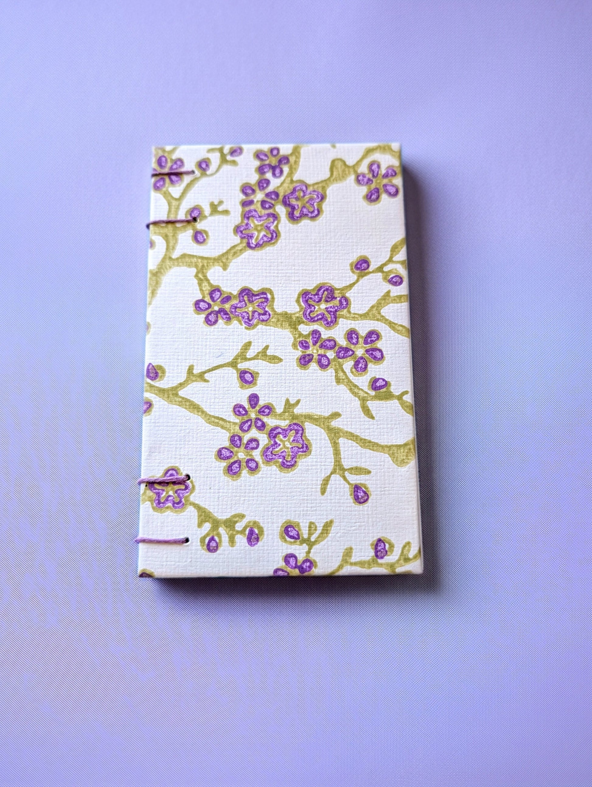 Purple Flowers on Branches print pattern mini sketchbook.